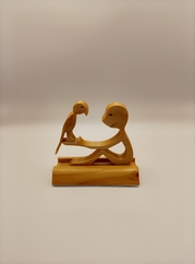 This is a wooden model made from recloaimed wood and wood stained and varnished. Sat on a platform with a felt bottom indludes man,women,girl,boy holding a heart. Delivery & Returns Policy