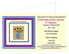 Saturday 25 April 2026. Creativity In Our Hands: Art, design & craft fair. 1pm - 5pm.