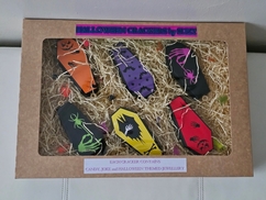 Delivery & Returns PolicyBox of 6 Halloween themed crackers each containing a joke, a treat and a piece of hand-made Halloween themed Jewellery