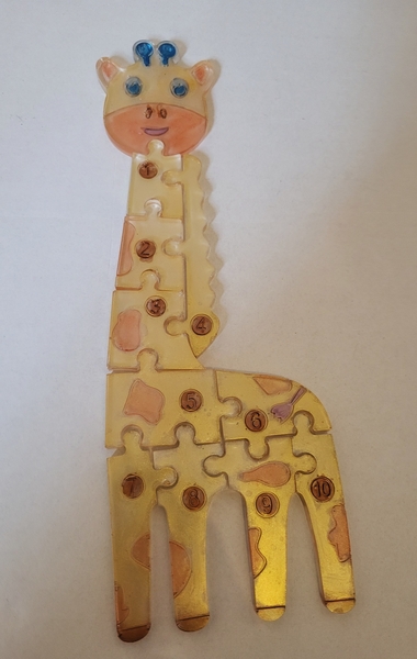 Hand painted character jigsaw. Pieces are numbered Not recommended for children under 3 years