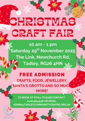 Christmas Market on the 29th November 10 - 1. Come along and meet Princess Belle, visit Santa's grotto and meet the Grinch! There are 24 craft stalls, food and so much more!https://www.tadleycommunitycentre.org.ukCar Parking Information