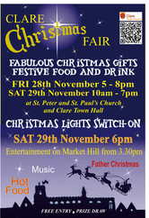 The Clare Christmas Fair is a popular and well-attended festive event held over two days in the centre of the lovely market town of Clare, Suffolk. Held on Friday evening and all day Saturday..
