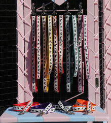 Our dog silhouette set includes a lead, collar and either a cotton bandanna or bow tie.The lead and collar are made from cushion webbing in a choice of 7 colours, coupled with a gorgeous dog silhouette ribbon. The medium set comes in 19mm and 24mm wide webbing. The collar fits 33-43cm approx and fastens securely with a metal buckle and D ring catcher.
