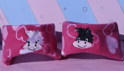 Our cosy ear warmers are perfect for chilly winter days. Made from super soft fleece and embroidered with a cute pony face. They have a pink heart outer layer and cerise lining. The pony comes in 4 different colours.
