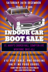 On Saturday 30th December we will be holding an in-door car boot sale - unwanted Christmas gifts, bric-a-brac etc. Strictly no food to be sold by stall holders.Free Entry to the public to increase foot fall.
