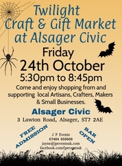 Come and join us for our Twilight Craft & Gift Market at Alsager Civic on Fiday 24th October Open to the public 5:30pm to 8:45pm (Free Admission) Cost of a 6ft table is ??£..