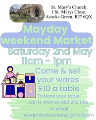 The event is held in the parish church of Acocks Green. At past Markets weve had a good footfall. There is a friendly atmosphere created within the market by stallholders and shoppers. The table is provided and there will be help available to bring items from your vehicle if required.