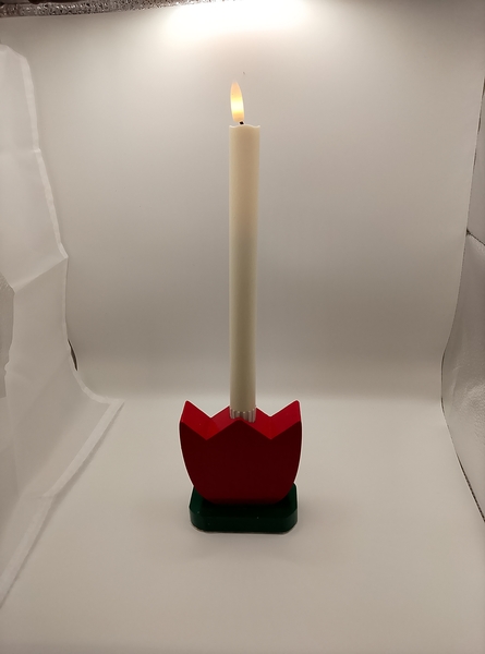 Delivery & Returns PolicyThis is a wooden tulip candle holder made from reused wood. It has been varnished or painted and includes an LED candle.(batteries not included). We have one each of clear, Pink,Purple,Red, Blue Yellow