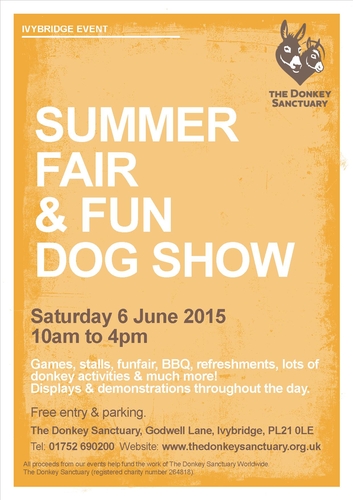 Donkey Sanctuary Ivybridge is holding its largest annual fundraising event on 6th June 2015. Our Summer Fair and Fun Dog show will take place from 10am to 4pm. We are looking for a variety of stall holders to join us at our well attended annual fair. Booking forms can be obtained by calling 01752 690200 or emailing ivybridge@thedonkeysanctuary.org.uk.