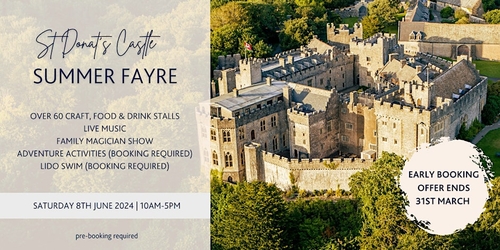 You are welcome to bring your own picnics but ask you dispose of rubbish in the correct recycling binswww.eventbrite.co.uk/e/summer-fayre-at-st-donats-castle-tickets-835995784897?aff=oddtdtcreator