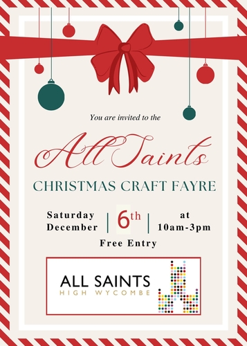 The All Saints Christmas Craft Fayre is a festive, enjoyable event held annually on the first Saturday of December and this year on Saturday 6th December from 10am-3pm with free entry. There is Christmas shopping from a variety of interesting and high quality craft stalls in the beautiful setting of the historic All Saints Church in the centre of High Wycombe. Refreshments are available throughout, there are activities for children & the festive atmosphere is enhanced with hand bell ringing, carols sung by the Church choir & live instrumental music. It is a perfect way to start off Christmas 2025 whether you are Christmas shopping or selling high quality crafts. Please join us!https://www.allsaintshighwycombe.org/events.htmlCar Parking Information
